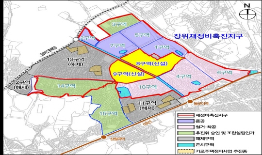 ÀåÀ§8¡¤9±¸¿ªÀº ¾Õ¼­ ÀåÀ§´ºÅ¸¿îÀ» ÃßÁøÇÏ´Ù°¡ 2017³â Á¤ºñ±¸¿ª¿¡¼­ ÇØÁ¦µÈ ÀÌÈÄ 2020³â °ø°øÀç°³¹ß »ç¾÷Èĺ¸Áö·Î ¼±Á¤µÆ´Ù. À̹ø ÀçÁ¤ºñÃËÁø°èȹ¾È¿¡¼­´Â ´ë»óÁöÀÇ º¯È­µÈ ¿©°ÇÀ» ¹Ý¿µÇØ µµ·Î µî ±â¹Ý½Ã¼³ °èȹÀ» ÀçÁ¶Á¤Çϸ鼭 Áö¿ª¿¡ ÇÊ¿äÇÑ »çȸº¹Áö¡¤¹®È­½Ã¼³ µîÀ» È®º¸Çß´Ù.