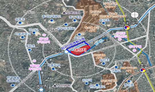 ÇѼº´ëÀÔ±¸¿ª(4È£¼±)°ú ¼ººÏõ »çÀÌ¿¡ À§Ä¡ÇØ ÀÔÁö Á¶°ÇÀÌ ¿ì¼öÇÏ¸ç ´ë»óÁö ÁÖº¯ÀÇ ±³Å롤º¸Çà ȯ°æÀ» À§ÇØ µµ·Î È®Æø µîµµ Á¤ºñÇÒ ¿¹Á¤ÀÌ´Ù. ³«»ê°ø¿ø ¼º°û¿¡¼­ ´ë»óÁö¸¦ ¹Ù¶óº» Á¶¸ÁÀ¸·Î ÁÖº¯°ú ÀÚ¿¬½º·¯¿î ½ºÄ«À̶óÀÎÀ» °èȹÇß°í, ´ë»óÁö ÀÎÁ¢ °¡·Îº¯À¸·Î´Â ¿¬µµÇü ±Ù¸°»ýȰ½Ã¼³À» ÁýÁß ¹èÄ¡ÇØ °¡·ÎȰ¼ºÈ­¸¦ À¯µµÇß´Ù.